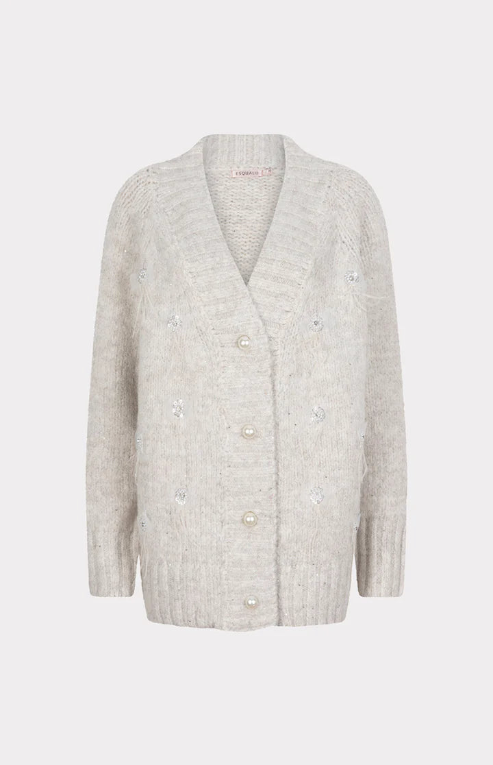 Le cardigan Esqualo Intarsia Letters Noir Doré Olive est un cardigan en maille tendance orné d'un imprimé lettres fantaisie. L'association du noir et du doré olive crée un look décontracté et contemporain, idéal pour sublimer votre look automnal.