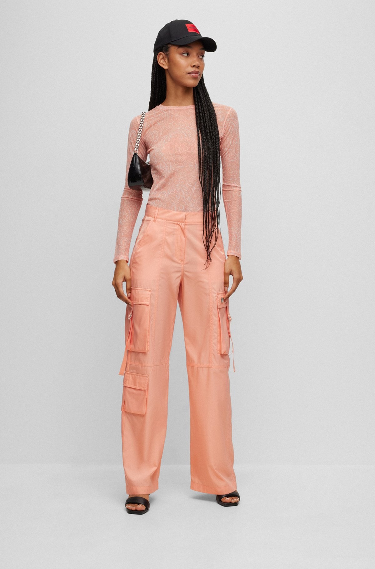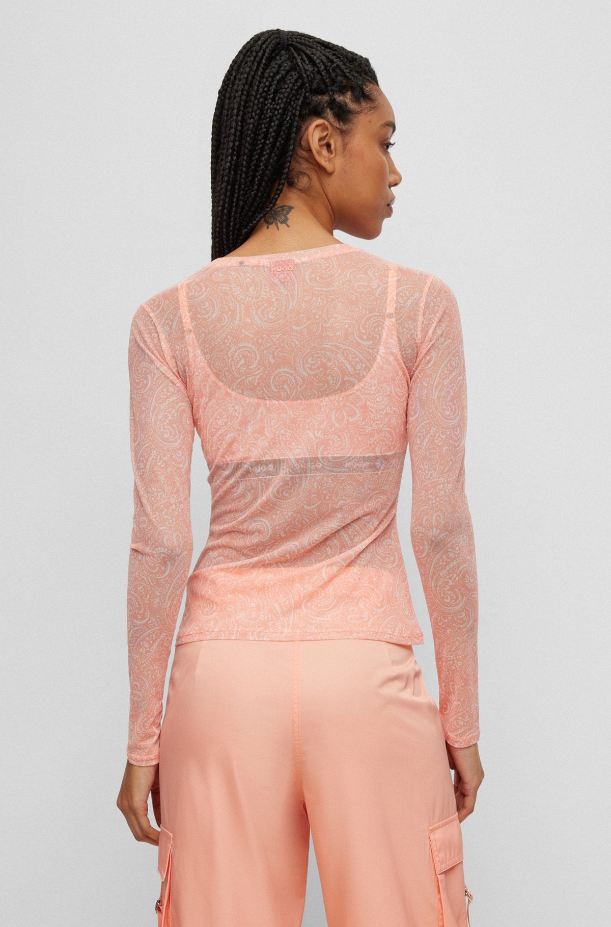 Regular price $134.40 CADLong-sleeved, slim-fit top in printed stretch mesh by HUGO Womenswear.