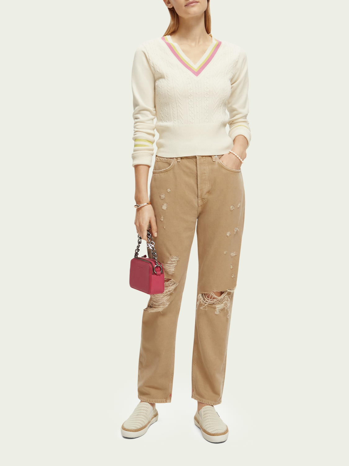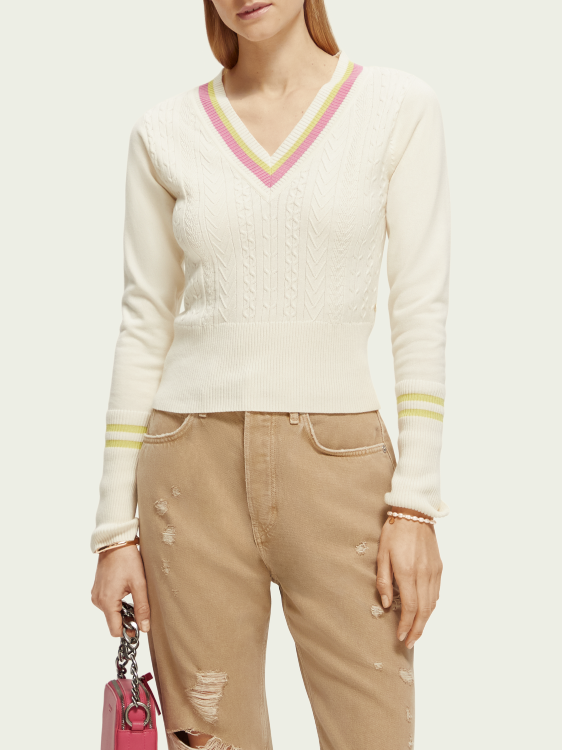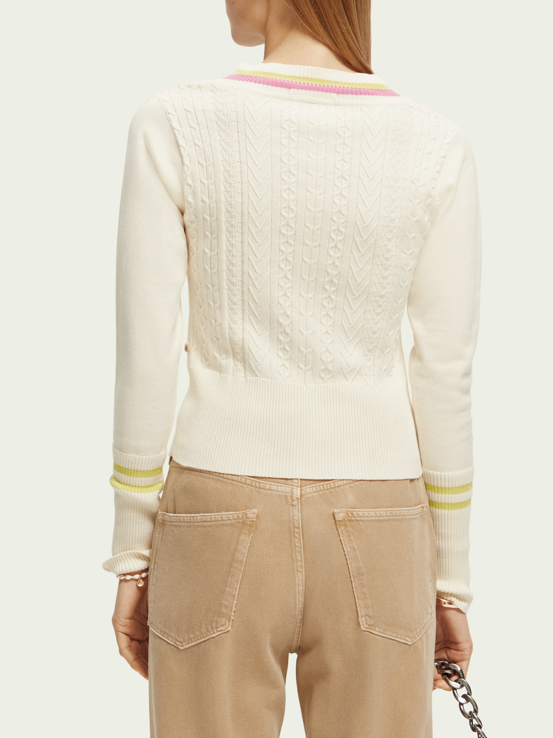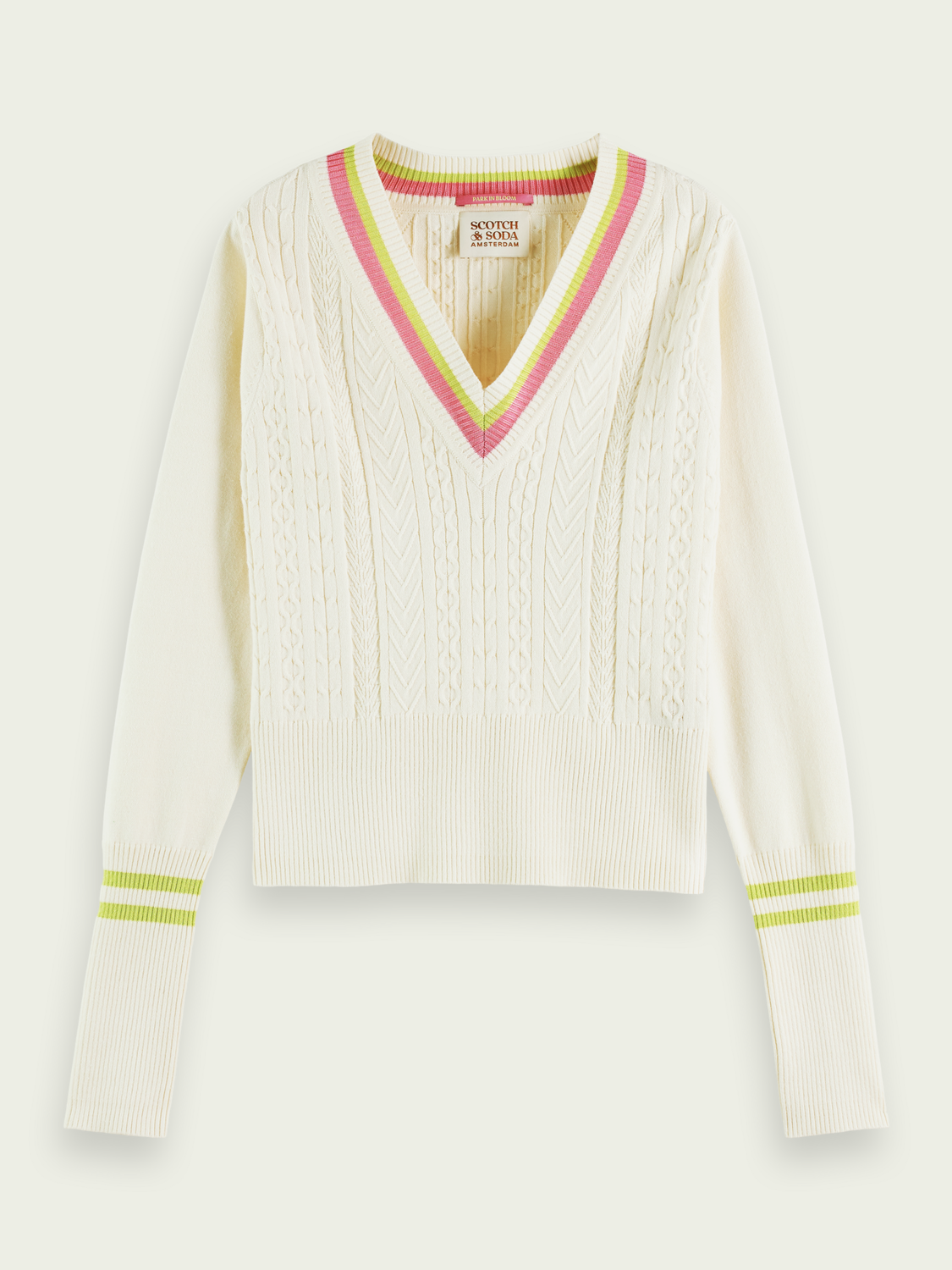 Regular price $99.00 CADThe classic sweater is a favorite in any collection. Featuring a two-tone v-neck and cable knit construction, with a ribbed hem and cuffs, this style provides comfort and warmth for everyday wear.