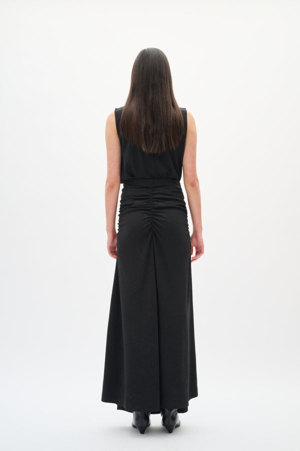 La jupe Krith d'InWear est une élégante jupe longue à la brillance subtile et à la silhouette moulante. Son drapé flatteur sur les côtés accentue la taille et lui confère une allure élégante. Confectionnée dans une matière douce et extensible, confortable et souple, elle est parfaite au quotidien comme pour les soirées.