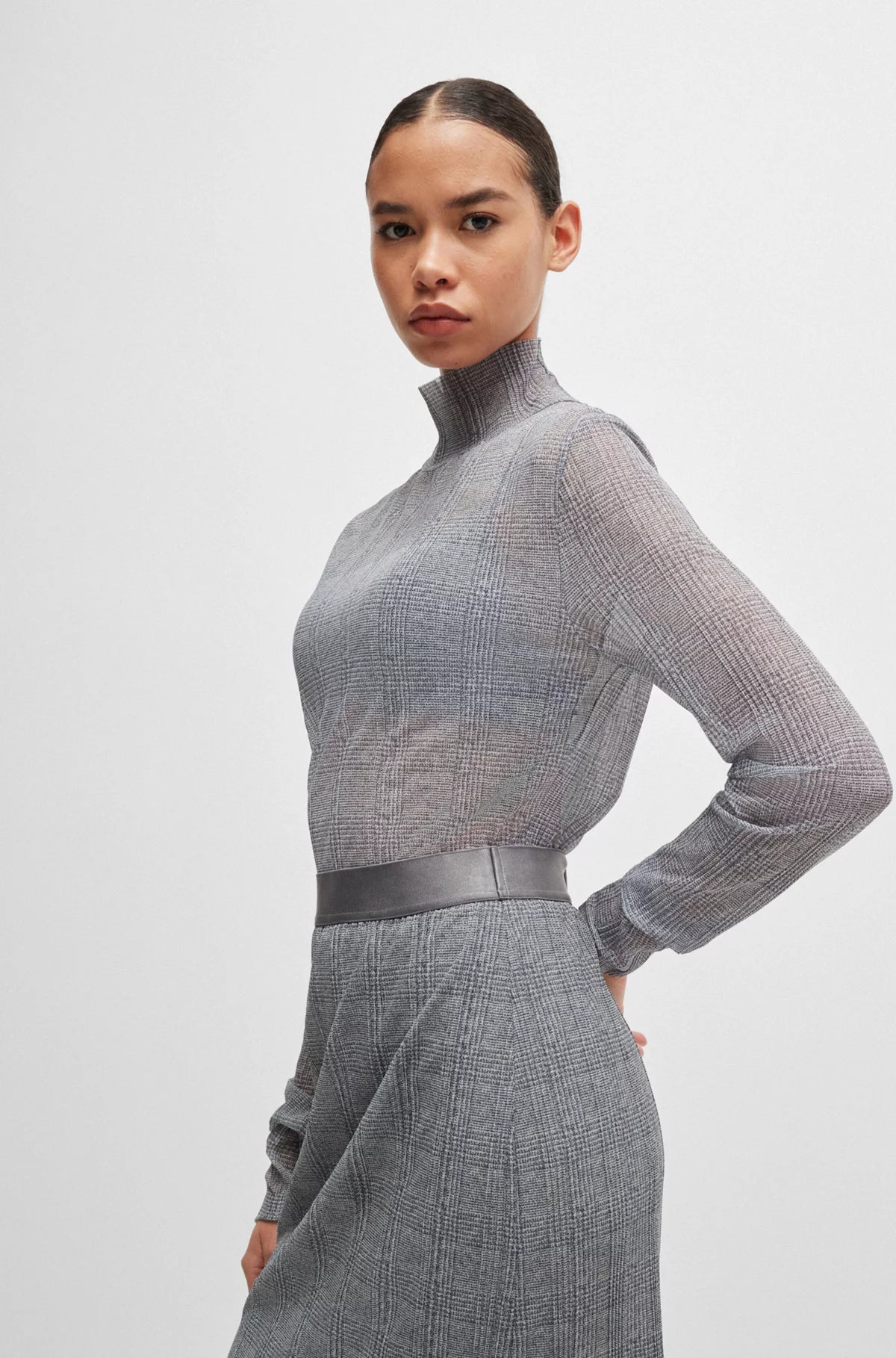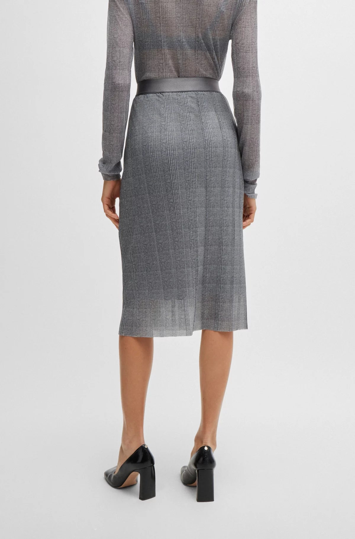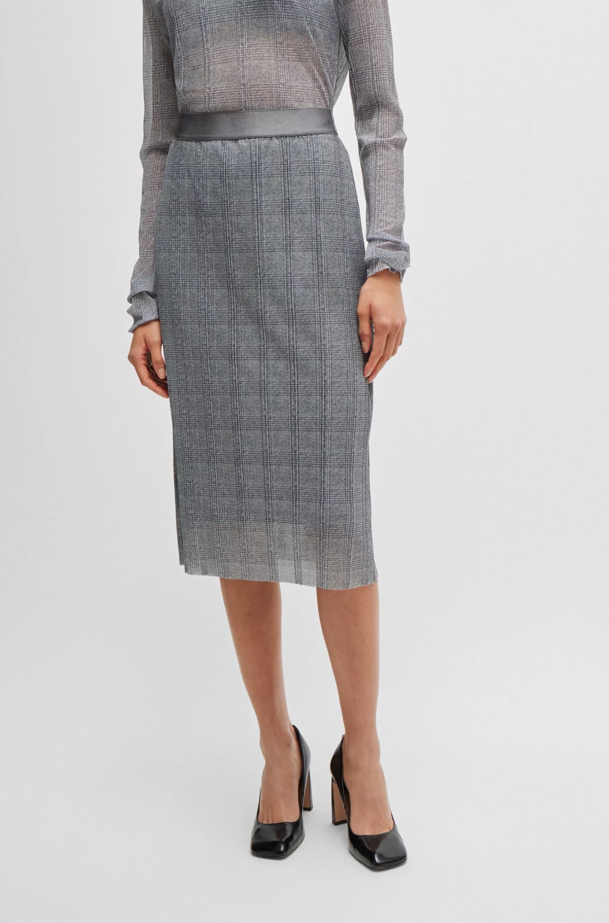 Regular price $149.00 CADHugo Boss slim-fit stretch tulle check pull-on midi skirt with wavy pleat and contrast elasticated waistband.
