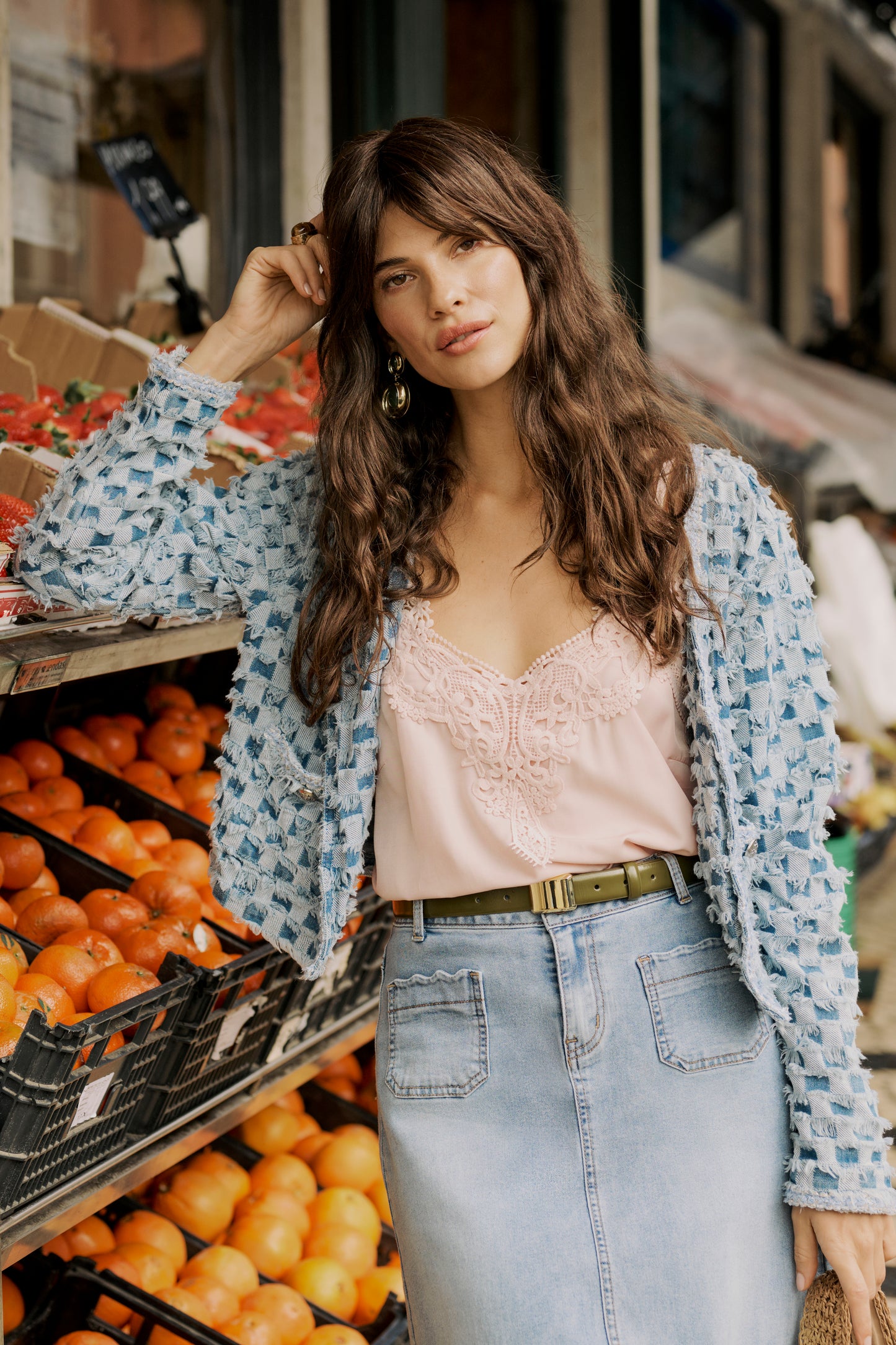 Cream skirt in denim color