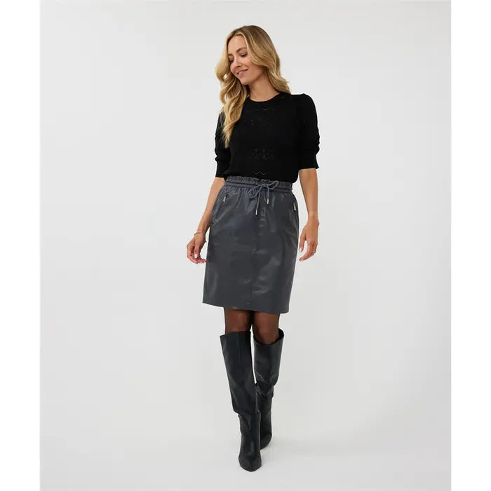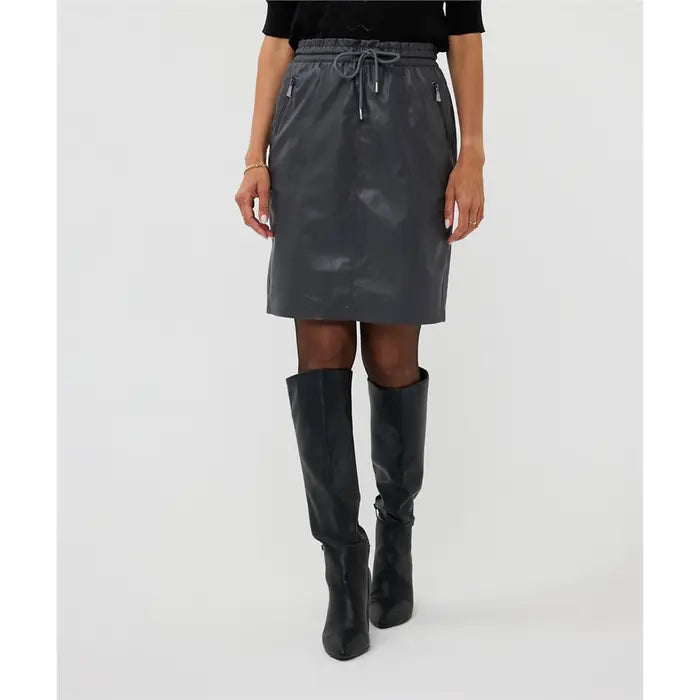 Regular price $44.50 CADVegan leather knee-length skirt from Esqualo. A drawstring waistband provides a better fit. There are pockets on each side. Pair this skirt with a beautiful top from the same collection.