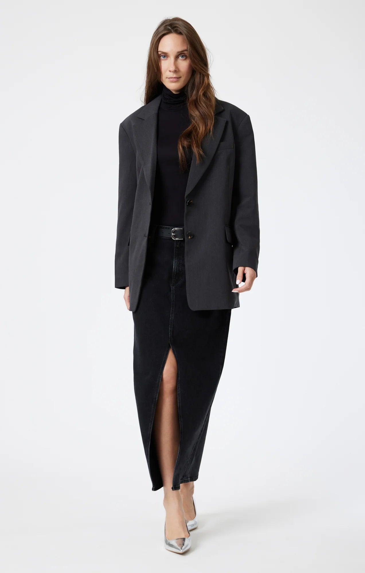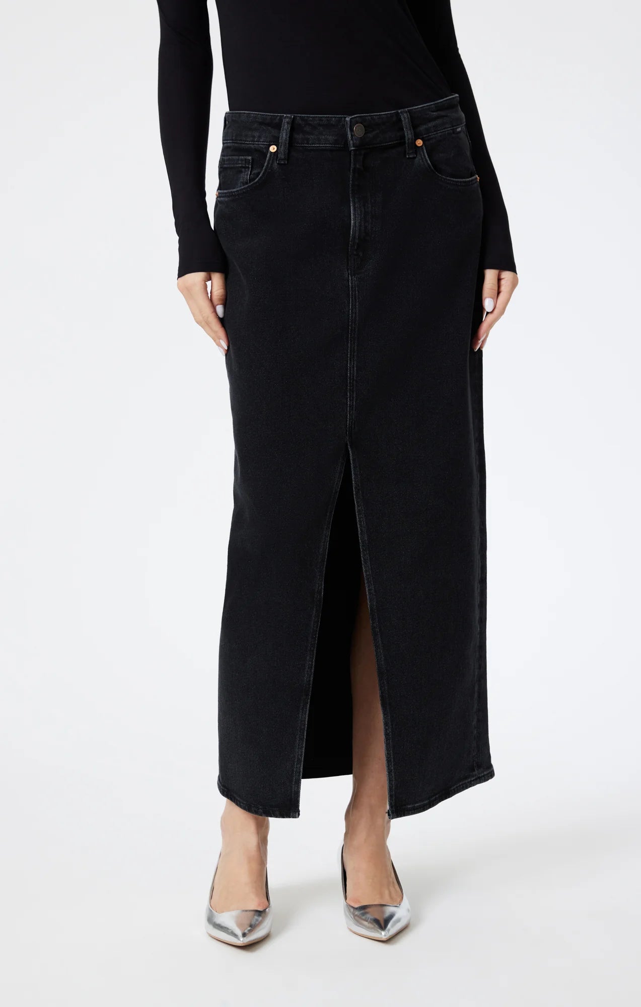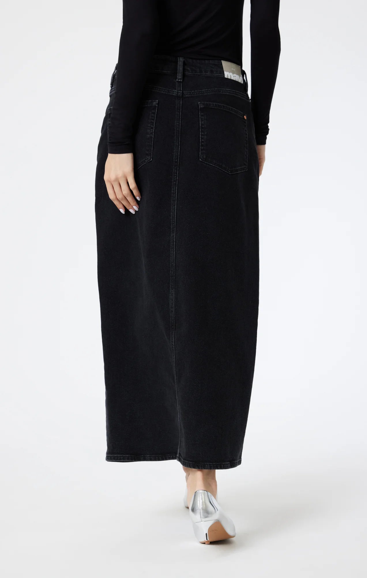 Milena is our maxi denim skirt with a trendy slit that allows you to move easily. Featuring a clean hem and designed to hit the mid- to lower back, this skirt is flattering without being too tight.