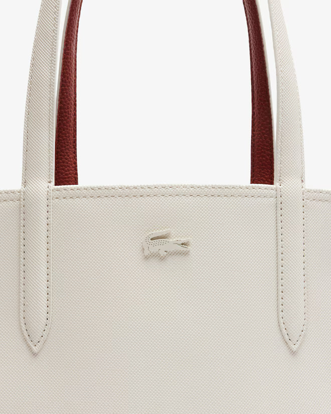 This reversible zipped tote features Lacoste's signature petit piqué and an iconic crocodile print for a touch of elegance to any look. Its spacious design will hold your keys, papers, phone, makeup bag, and even a 15-inch laptop.