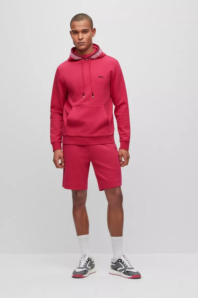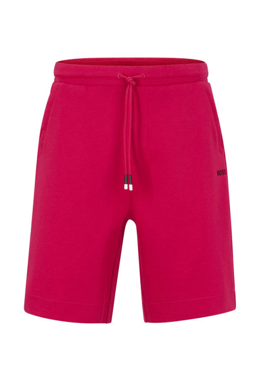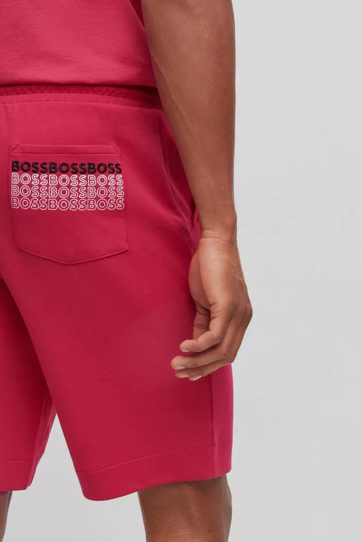 Regular price $89.00 CADBoss pants for men. Regular cut shorts. It is decorated with a repeated embroidered BOSS logo. It has side pockets and an elastic waist with an adjustable drawstring.