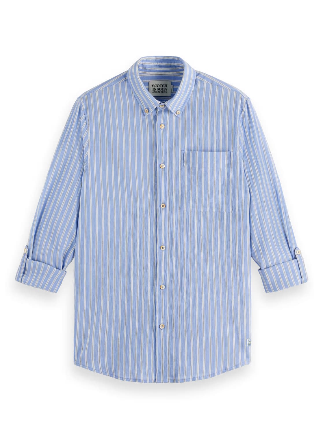 Regular price $74.00 CADThis striped shirt boasts a sophisticated look with its unique crinkled texture. Featuring a button-down closure, pockets, long sleeves, and folded cuffs, it's both stylish and functional.