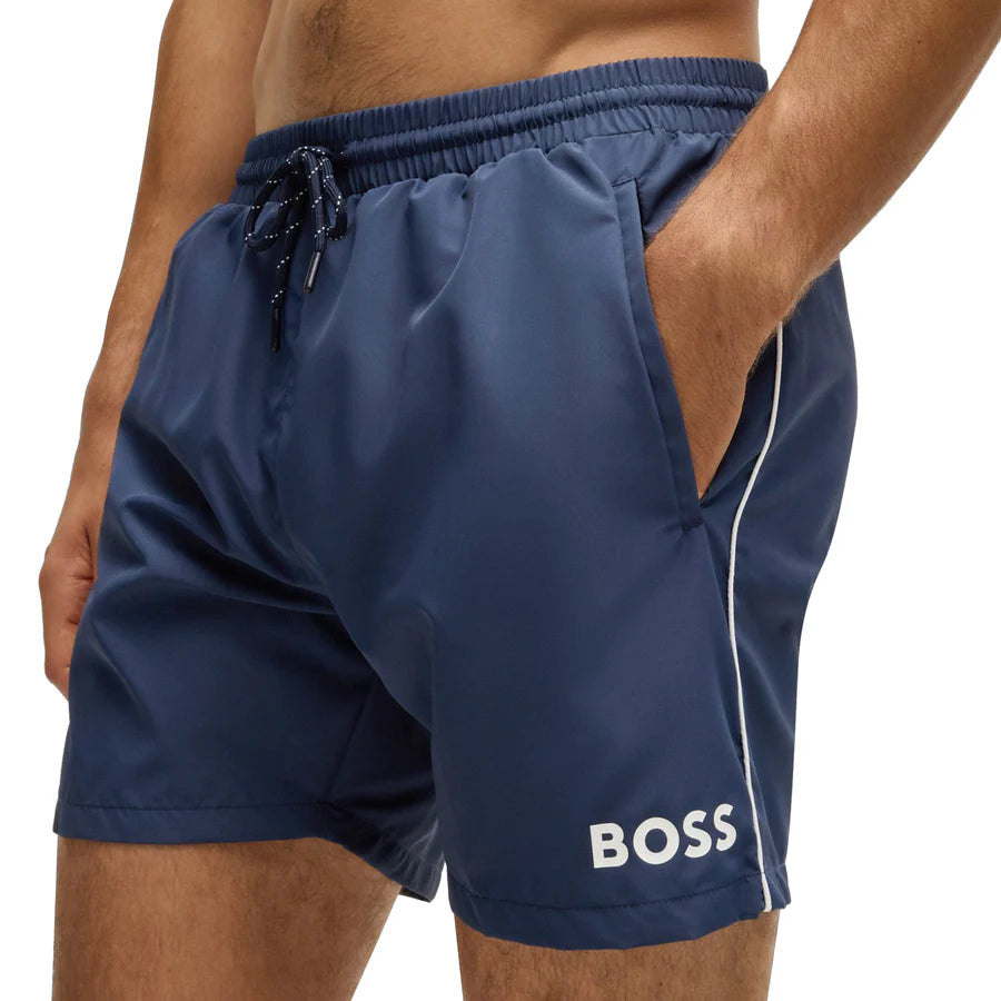 BOSS Starfish men's swim shorts, FA25 style. With their sporty contrasting details, these BOSS swim shorts will become a beach staple. Made from quick-drying fabric.