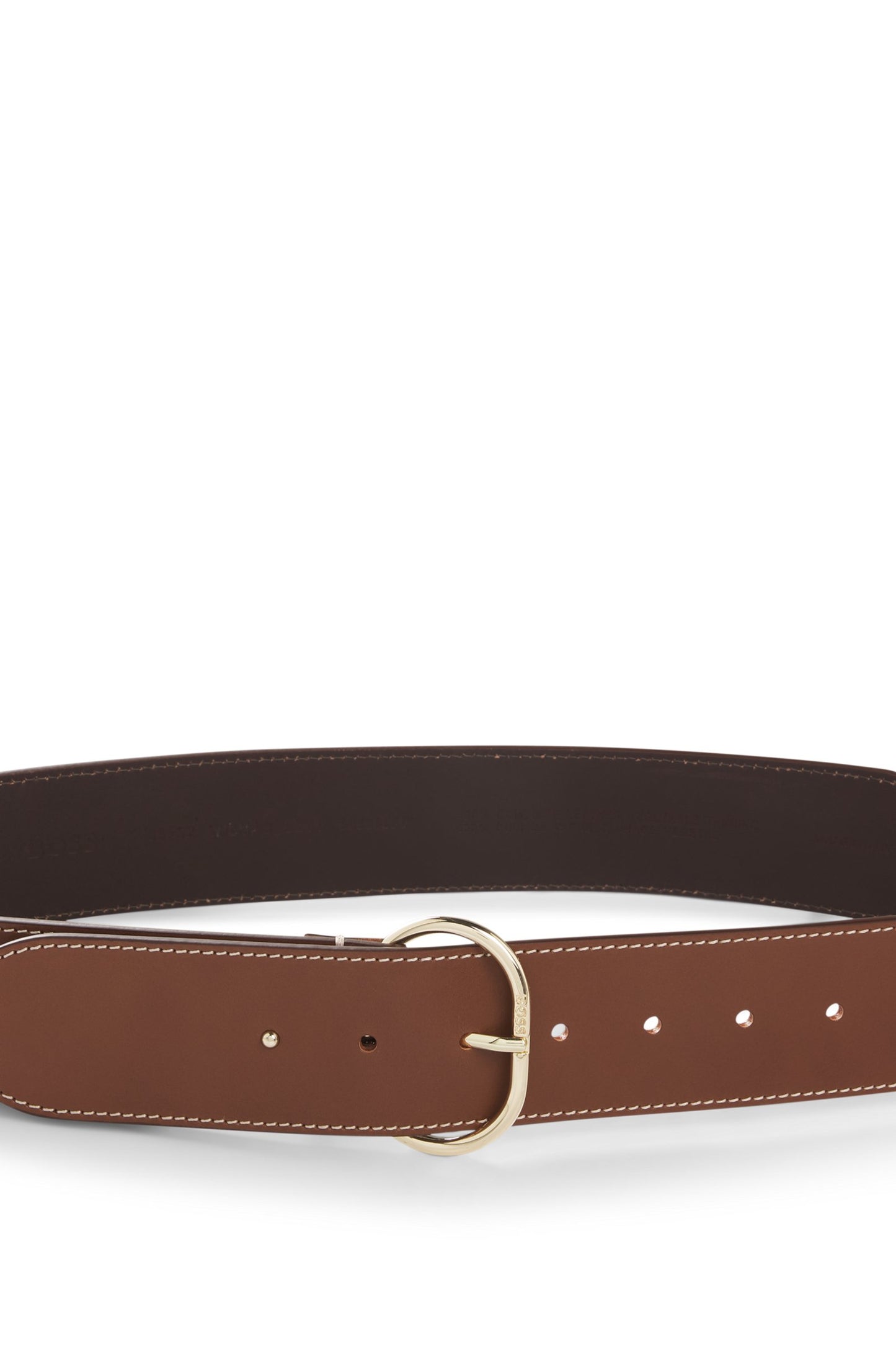 Apportez une touche chic à vos robes avec cette ceinture BOSS Femme en cuir lisse. Sa largeur de 5 cm et sa boucle dorée lui confèrent une allure élégante. Pour un confort optimal, nous vous conseillons de choisir une taille supérieure à votre tour de taille.