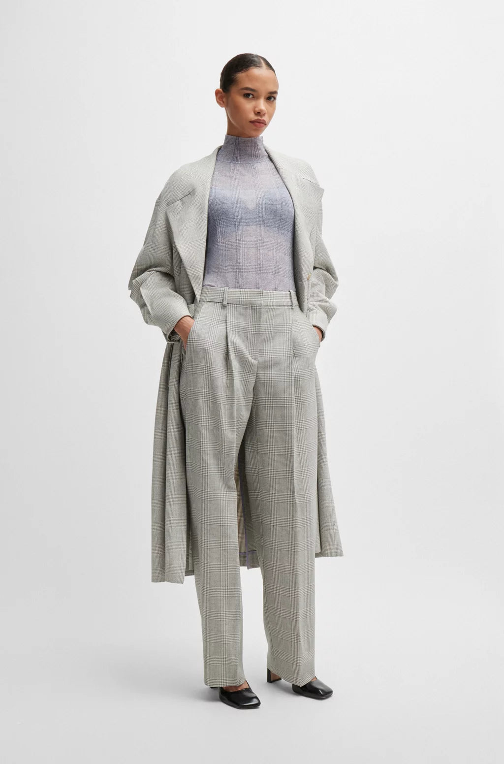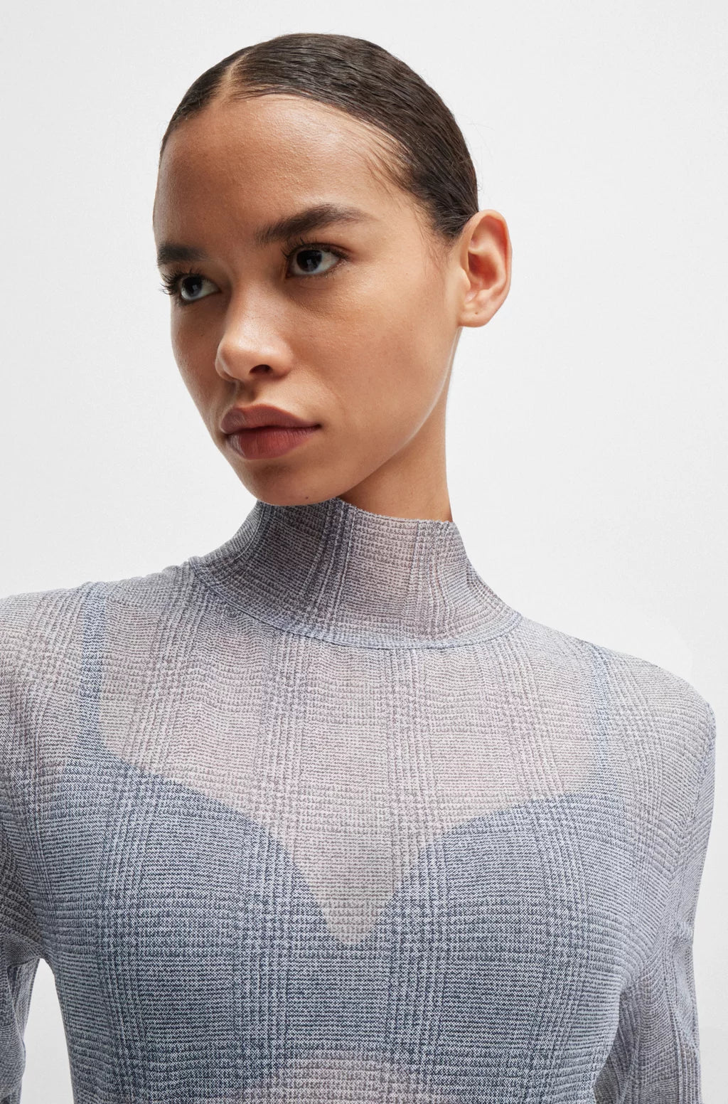 Prix régulier $99.00 CADUn haut féminin à col montant signé BOSS Femme. Ce sous-vêtement à manches longues est confectionné en tulle léger avec des plis plissés.