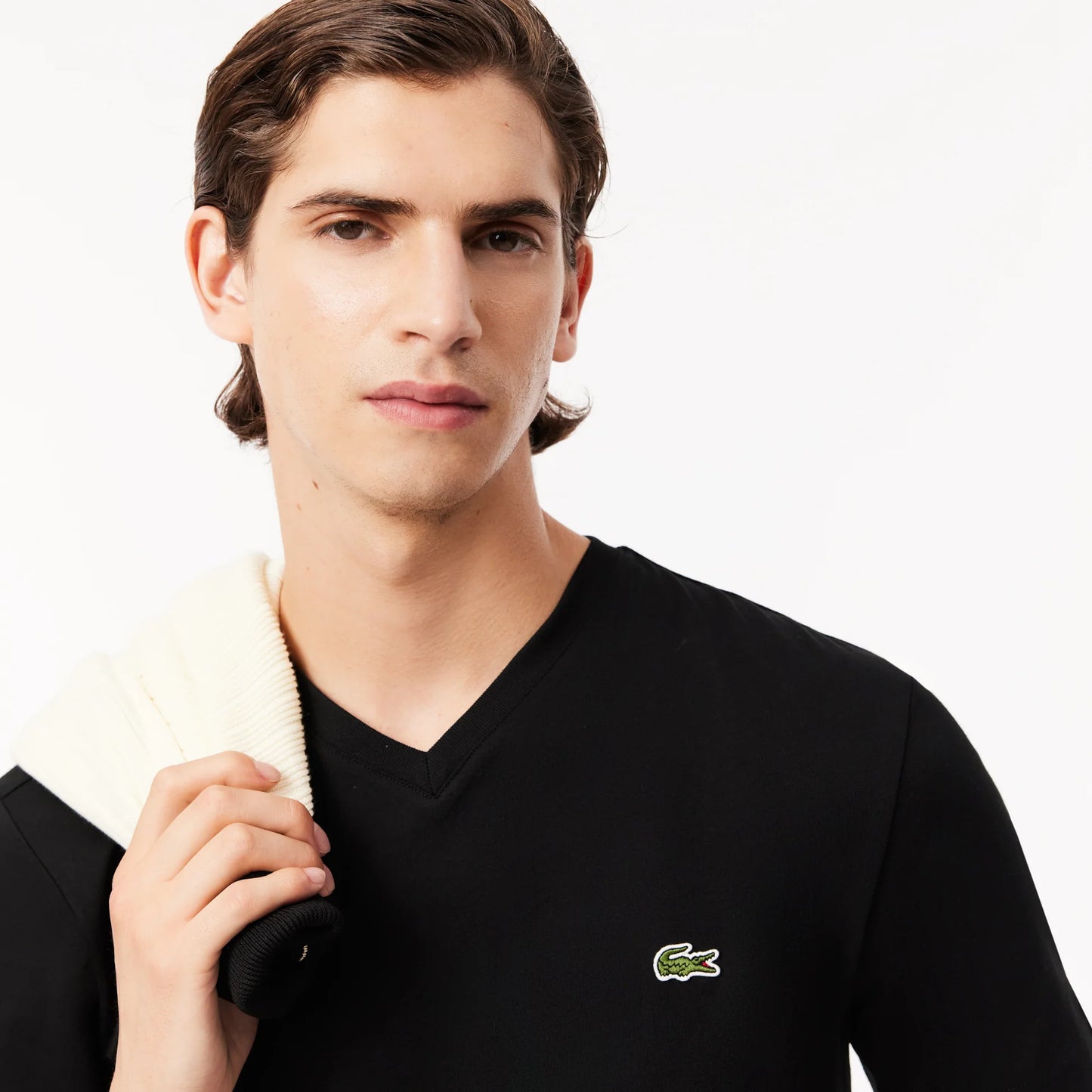 Un t-shirt en jersey de coton épais signé Lacoste, créateur de vêtements de sport depuis 1933. Il présente un col V décontracté, des épaules tombantes et un crocodile brodé avec finesse. Un modèle intemporel et polyvalent.