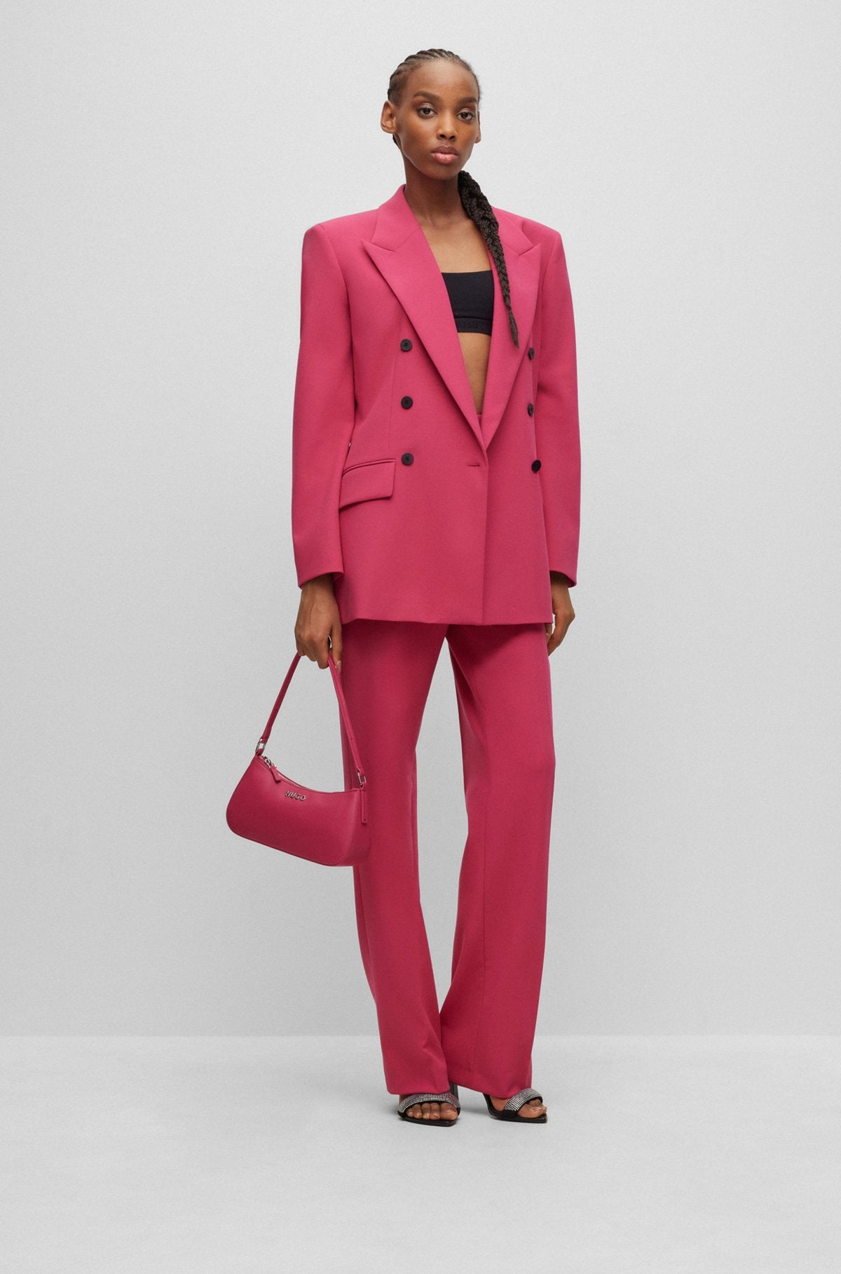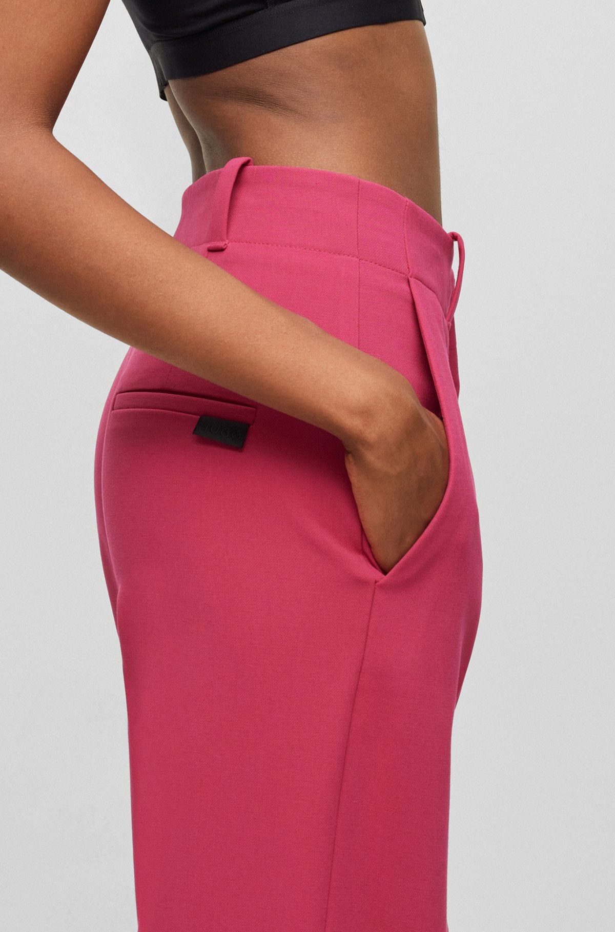 Prix régulier $174.00 CADPantalon taille haute contemporain par HUGO Femme, coupe droite avec jambe large en matière stretch.