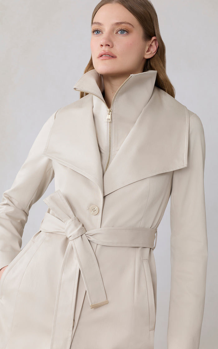 Le manteau ILANA par SOIA marie raffinement et look utilitaire. Ce manteau de bonne coupe est doté d'un plastron amovible pour un style superposition et d'une ceinture nouée soulignant la taille. Confectionné dans un tissu de coton extensible, il offre un style épuré et structuré conçu pour le mouvement.